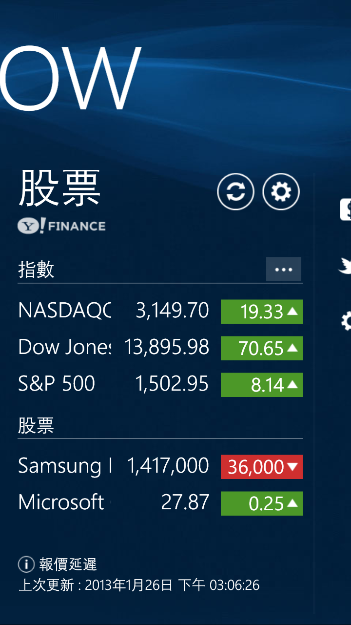 股票,內建的股票資訊有 Samsung 和 Microsoft ,果然......很有心。
