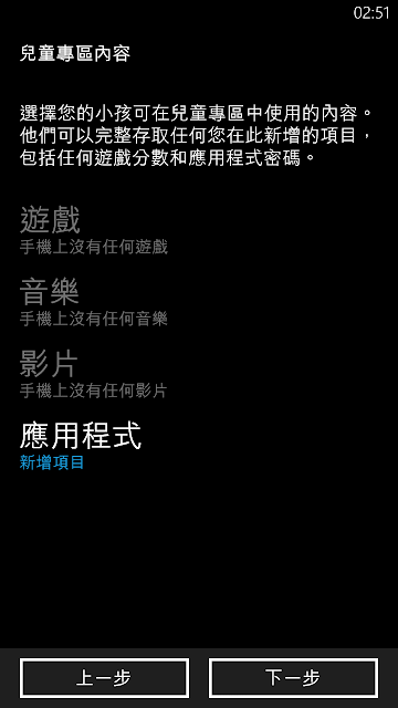 因為手機沒有遊戲、音樂、影片,因此是呈現無法選擇的狀態,這裡選擇「應用程式」來添加兒童能用的程式。