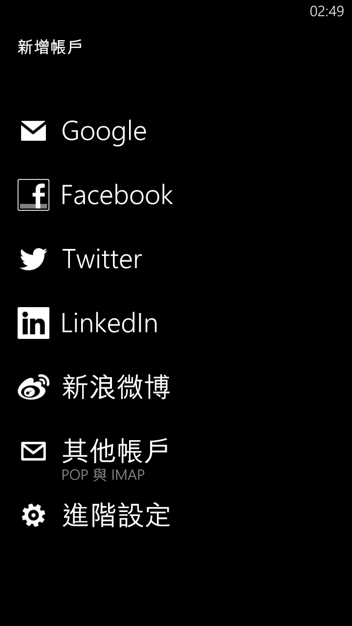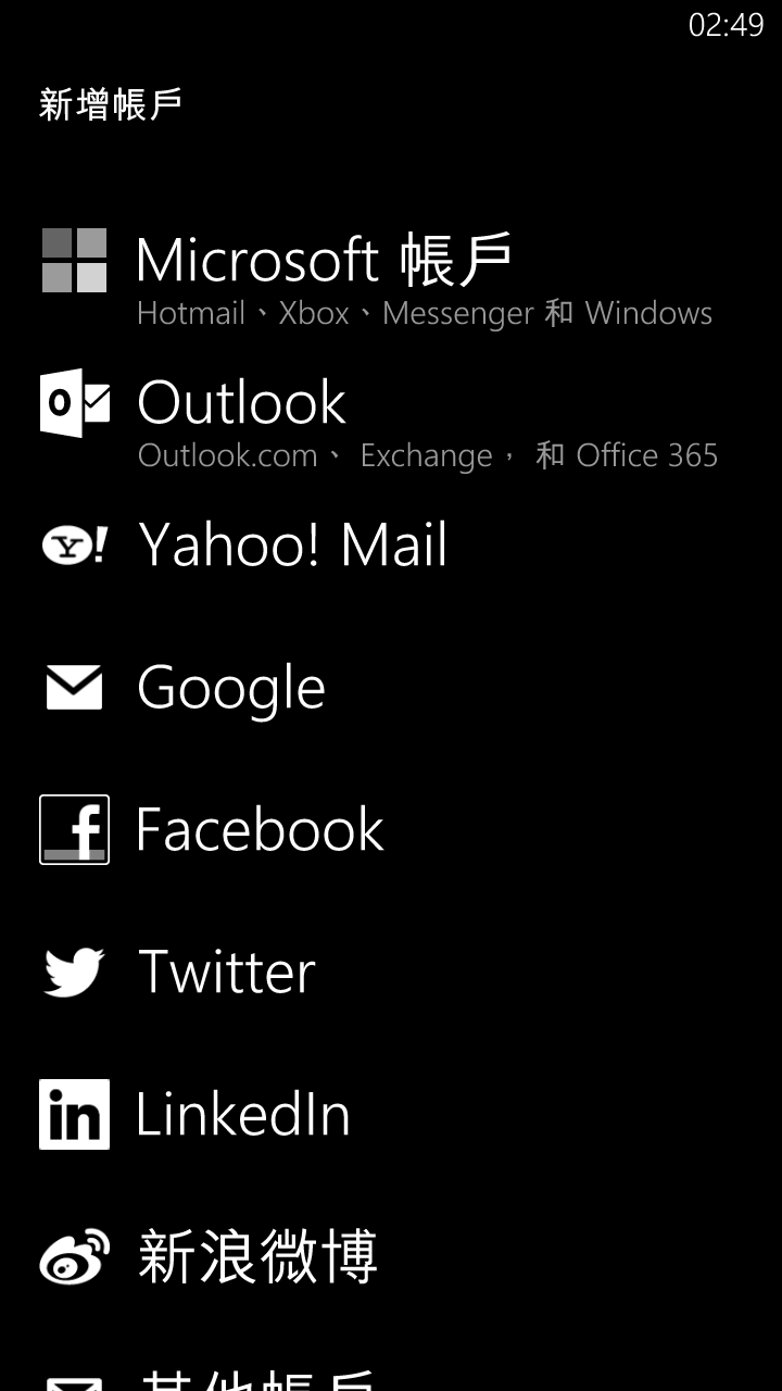 Windows Phone 8 支援多種社群帳戶,也包含了藝人常用的新浪微博。