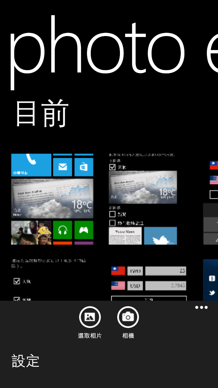 開啟 Photo Editor 之後,可以選取相片或是開啟相機程式,這邊選擇「相機」。