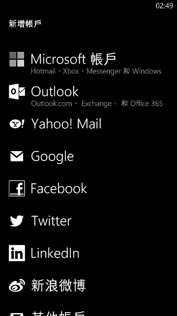 Windows Phone 8 支援多種社群帳戶,也包含了藝人常用的新浪微博。
