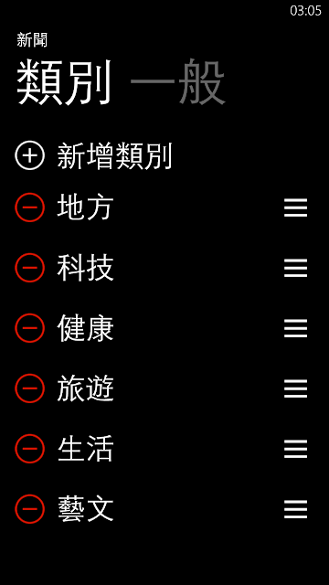 新聞資訊有內建多種常見的分類,使用者可以自由編排順序及移除或是保留分類。
