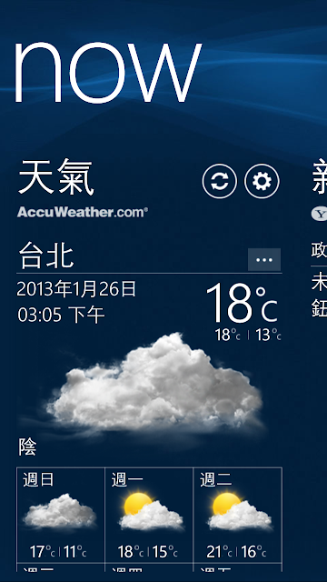 Now,可以掌握新聞、天氣、股票及匯率等資訊,也可以將這些功能釘選動態磚在首頁。