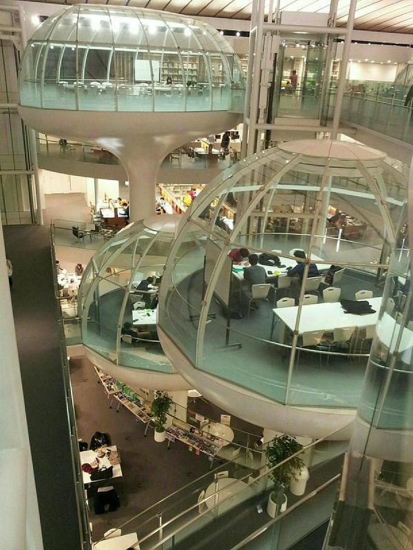 圖書館應該就是安安靜靜充滿書桌及書櫃的地方吧!不過日本的成蹊大學裡的圖書館就要顛覆你的想像。 成蹊大學裡的圖書館裡設計了透明的球狀會議室,由上往下看起來超像宇宙的飛碟屋,不知道在這種地方讀書會不會能量加倍! 資料來源 延伸閱讀: 漂亮驚艷的荷蘭玻璃圖書館 2 個人說讚 收藏 快速回應 引言回應