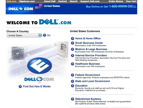 ▲ 以公司行號電腦為主力的 dell,在 2011 年的首頁就將客戶群的連結顯示出來,依照你是什麼客戶直接就可以選擇。
