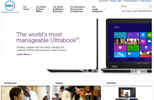 ▲ 2012年的 Dell,大大的圖像設計,主要業務也做成大按鈕放在下方。