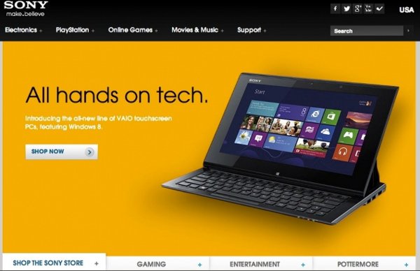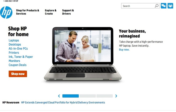 ▲ HP 近年主力是電腦以及筆電,首頁就打著大大的「Shop Now」要你去直接在網路上購買。
