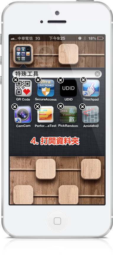 2. 資料夾中有資料夾,但這樣有個問題,裡面的資料夾並無法使用,點了只會重新開機(Respring),要拿這樣當 Respring 還要犧牲一個資料夾跟程式,還不如直接拿書報攤來開刀。