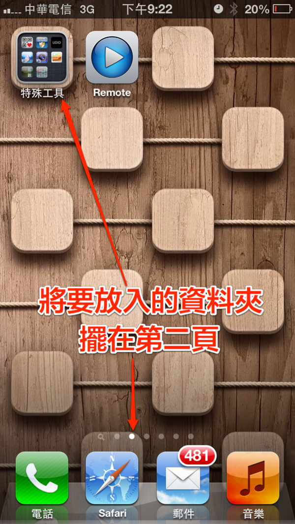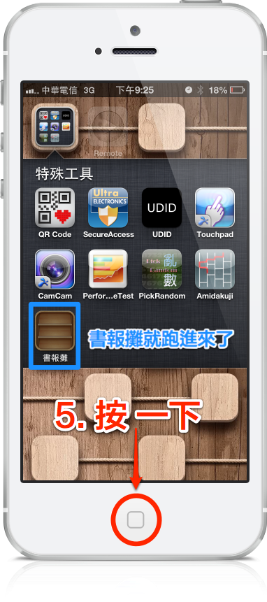 嚴格來說,書報攤也算是一個分類資料夾,所以當你把書報攤放入資料夾之後,只要你點到它,就會發生當機,並且快速完成開機,這動作有點像 JB 之後大家所熟悉的 Respring 。