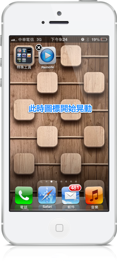 如果圖標沒有晃動,請重覆上面 1~3 步驟直到成功為止