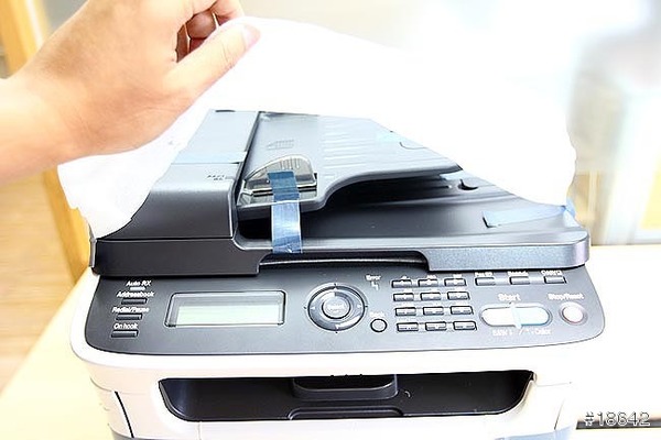 掀起你的蓋頭來~上方是掃描器的進紙、送紙匣和操作面板,而操作面板的下方則是出紙口。