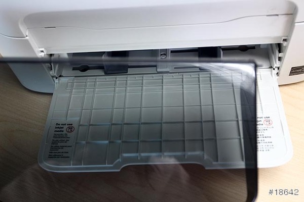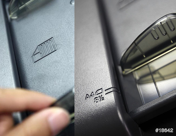 半透明的暗黑色壓克力,可以清楚的看到目前紙張的殘量,決定是否需補充紙張,