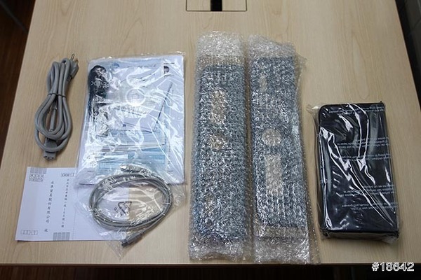 配件的部分:電源線、代理商保證卡、說明書、驅動光碟、電話線、USB線、黑色半透明的紙匣蓋,另外兩個用泡泡紙包著的,是不同語言版本的操作面板。(世界工廠生產的機器果然是銷向全世界)