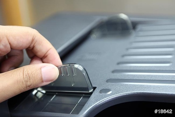回到MC1690MF上方,調節紙張寬度的擋板,採用透明的設計,增加整體質感。