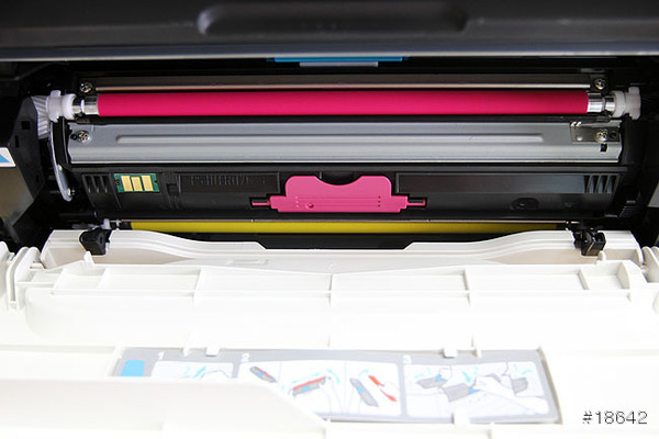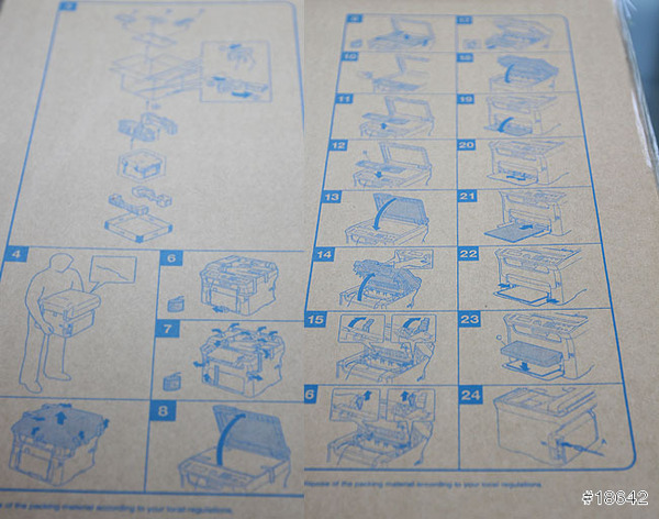 MC1690MF前方同樣附有使用前的準備圖示說明,主要是碳粉使用前的設定說明;也可以清楚看到整台