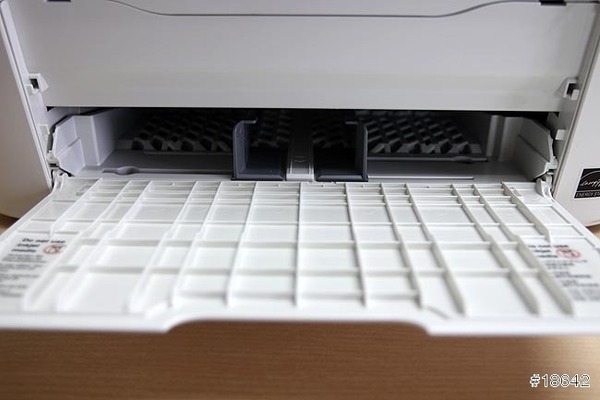 MC1690MF下方的進紙口設計,底板密集的格狀結構,應該可以提供勇壯的乘紙空間。