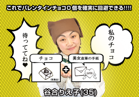 又快到了讓很多人破費又心碎的情人節,今年你有收到巧克力嗎?日本的業者為了要服務廣大的單身者推出所謂的情人節保險,參加這份保險的人必須購買一份價值5.5美元的保單,再提供一個接收情人節禮物的地址。之後在2月14日時可以收到一份禮物包裹,裡面包括巧克力和一位職業美女 Rieko 寫的情書,讓單身者也能享受收禮物的喜悅。 資料來源 1 個人說讚 收藏 快速回應 引言回應