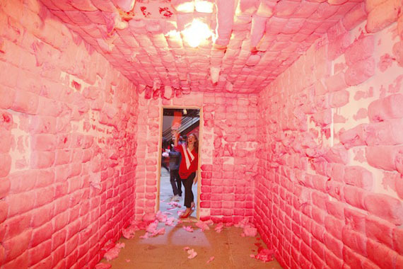 小時候常常吃的棉花糖,如果用來蓋房間會變成什麼樣呢?裝置藝術家Jennifer Rubell就利用多達1,800 的粉紅色棉花糖,打造了一間夢幻粉紅色房間,成了貨真價實的糖果屋。 不過這樣住進去應該會全身黏黏的外加超容易發胖吧! 2 個人說讚 收藏 快速回應 引言回應 共 1 則回應 1 樓 · 暗黑 · 發表於 2013-02-18 19:15 · 檢舉 還沒吃完就被塌掉的房子壓死了吧╮(╯_╰)╭ 讚 引言回應