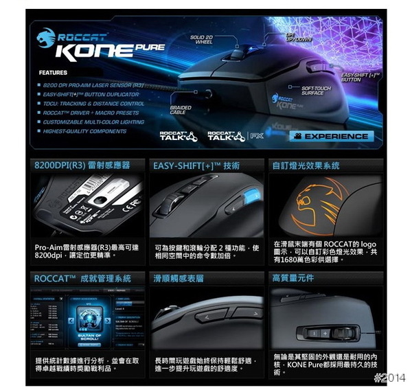 有關 ROCCAT KONE PURE 雷射電競滑鼠 的特色。