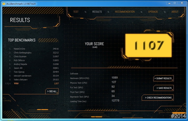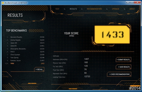 使用最近很火紅的 3D測試軟體 Catzilla Allbenchmark 跑一下分數。