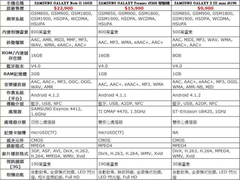 青菜蘿蔔各有所好,如果你喜歡小螢幕覺得好攜帶,只是要一支剛入門的智慧型手機,那SIII mini很適合你,如果你想要拍照的功能炫一點,又不想超過兩萬,且用不到手寫筆的功能,那可以選Premier變臉機