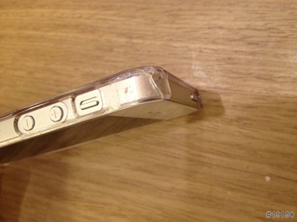 到了I5買手機時附送一個790元的透明手機殻,裝上時膽顫心驚,因為就像一般塑膠的外殼都很硬沒有延展性,深怕把我小白刮花,太大力又怕把790元的手機殼掰斷,必須裝得小心翼翼才裝得上去,全透明的外型還不錯,萬萬沒想到不到1個月,放在包包的手機拿出來,突然出現超大裂痕@@天阿!最可怕的是在我的I5留下刮痕超心疼,還好是淺淺的不明顯,而且用沒多久裡面已經卡了好多屑屑,失去I5原本潔白的外觀,只好再覓新殼。