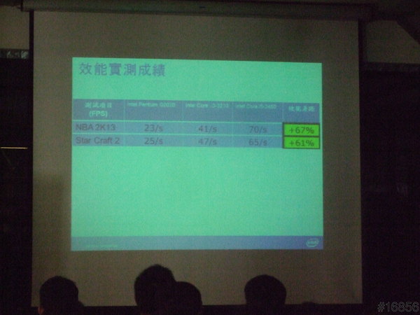 在來是對自家CPU做比較,比較的CPU是I5-3450、I3-3210跟G2020,在會場中用了2塊遊戲做比較 NBA 2K13跟星海2,