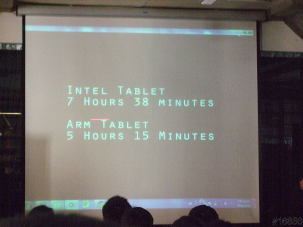 先是對SURFACE做比較,這次比較的項目是省電能力,最後Z2760贏對手2小時又13分鐘,而且測試的時間也接近Intel號稱的8小時的續航力,