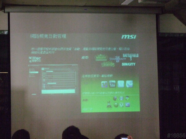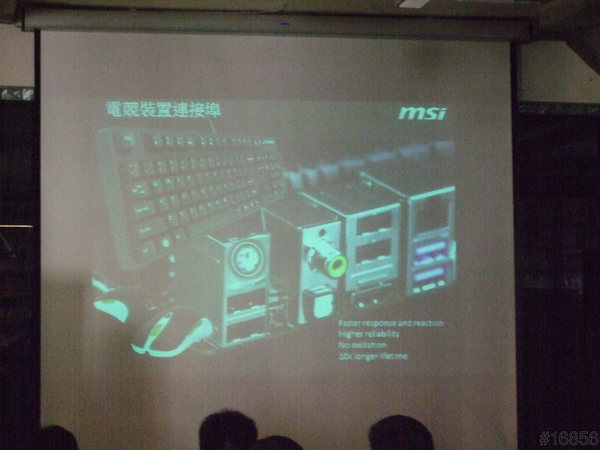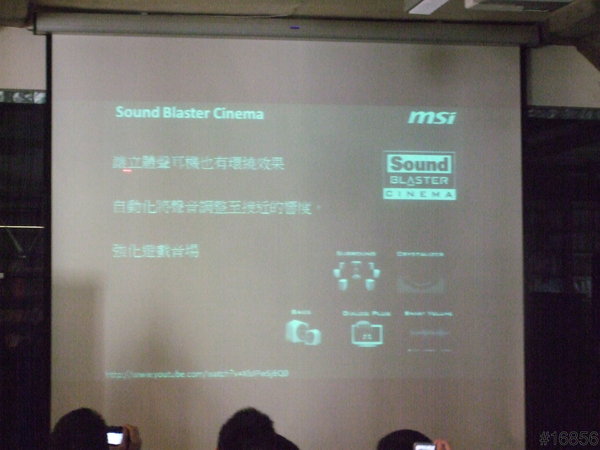 MSI主要的介紹的是他們最新的主機板,主機板的功能是自動網路頻寬管理系統、Sound Blaster Cinema、SLI、快速超頻、外接孔鍍金