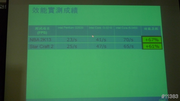 1.在INTEL部份,跳脫以往僅對單一型號產品做優點比較,此次選擇3款不同的處理器型號(G2020,i3-3210,i5-3450),在相同的配備下(主機板,顯示卡,硬碟,記憶體,power)執行同樣的遊戲,藉由遊戲影片的播放我們可以很清楚的之處理器效能的差異性,這點讓我印象最為深刻,以往都覺得只要顯示卡夠好,遊戲一定跑得順,其實還是要看處理器的效能好不好.