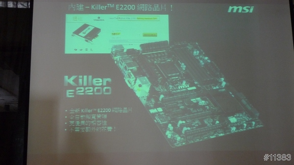 2.再來是微星主打介紹殺手級主機板 Killer E2200,有全自動頻寬管理,能夠降低低延遲的時間,想想我們在玩線上遊戲時,兩軍相殺往往就差那半秒或一秒的差異就能決定誰會領300,而且還能夠進行網路多工運用,讓我們再打遊戲的同時還可以開即時通跟對友溝通,聽線上音樂等.