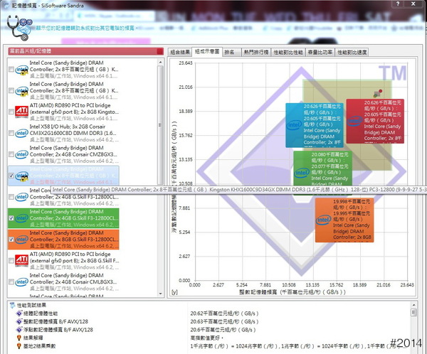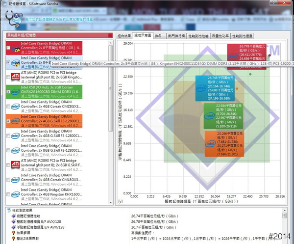 SiSoftware Sandra記憶體頻寬效能測試(測試結果愈大愈好)