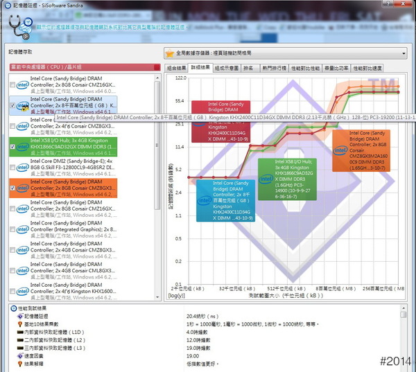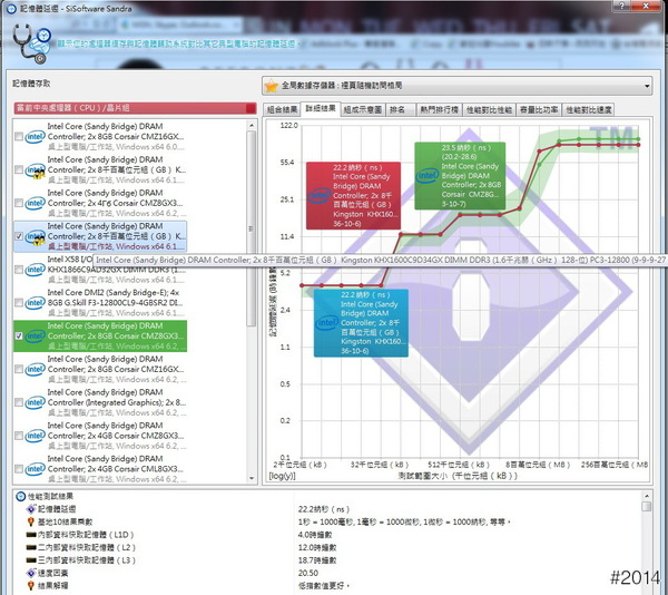 SiSoftware Sandra記憶體延遲測試(測試結果愈小愈好)