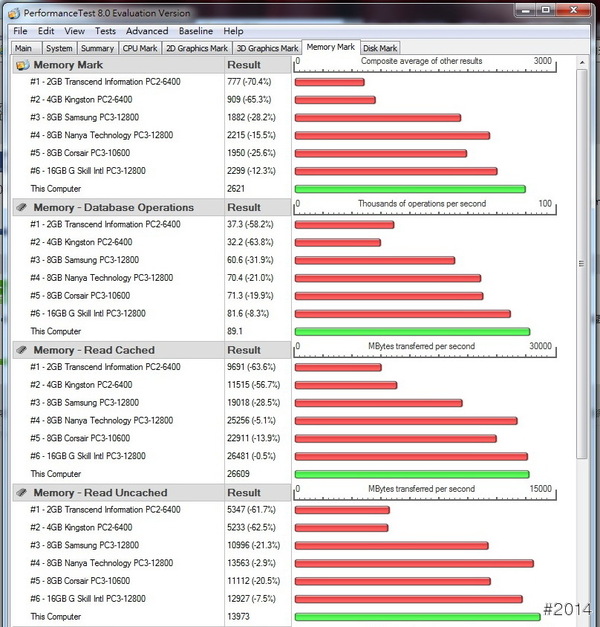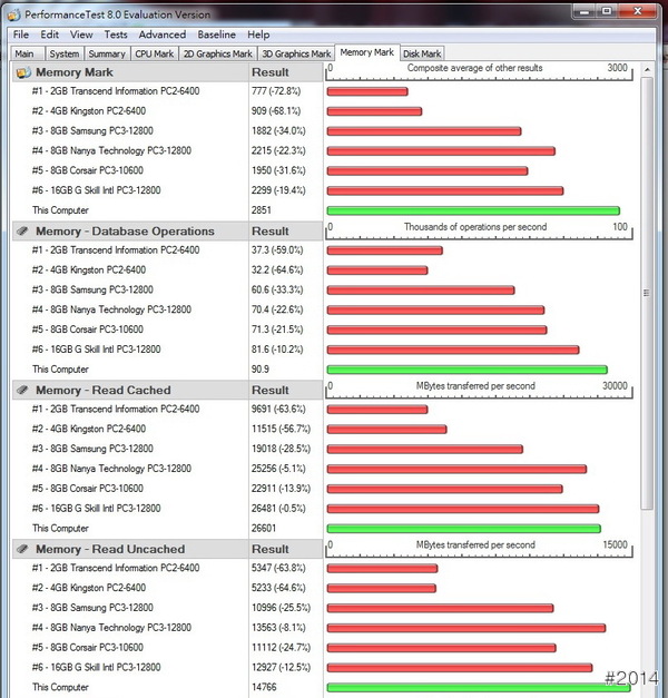 PerformanceTest 8.0 記憶體項目測試(測試結果愈大愈好)