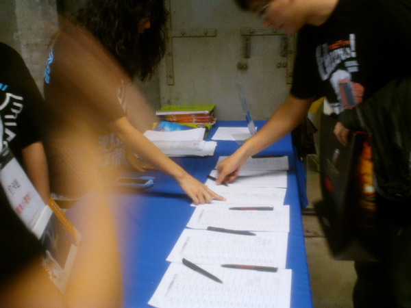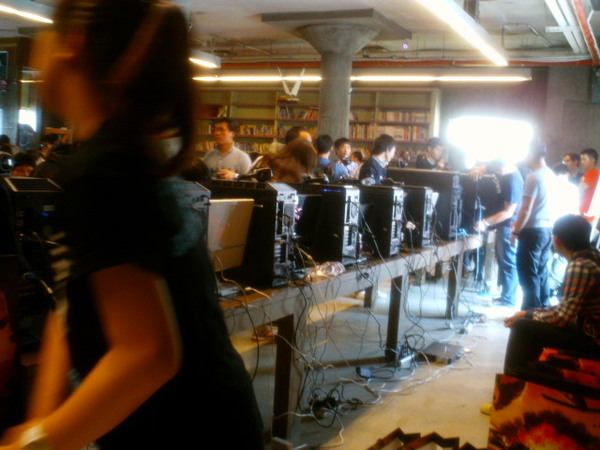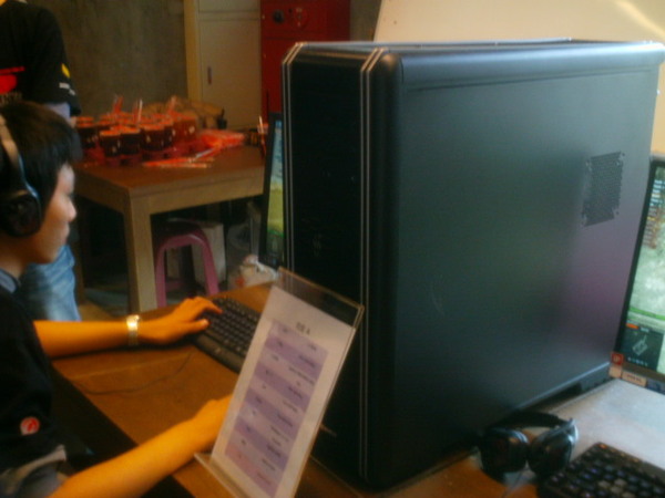 現場擺了9台[每組3台] 不同規格的PCs讓大家一顯身手. 免費的, 當然擠的水洩不通. 網友投票選出各組的第1名.