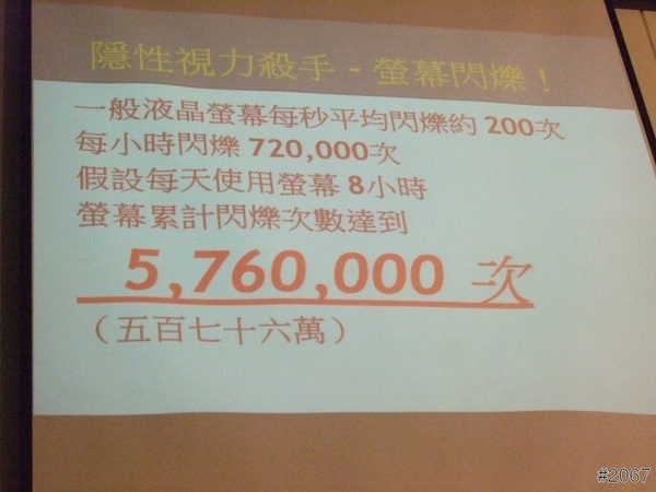 今天坐第二組,原來一般顯示器每秒閃動200~250次喔!