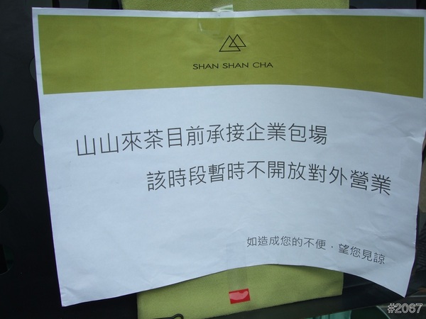 一到門口看到山山來茶貼出告示(嗯!意思就是不會有閒雜人等來打擾)