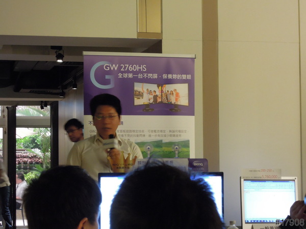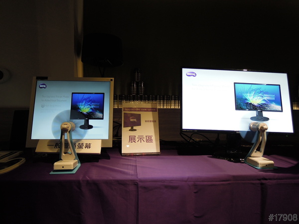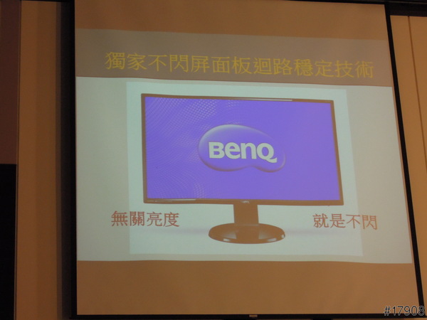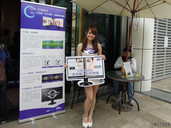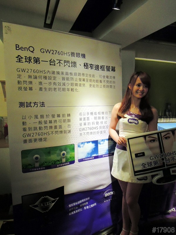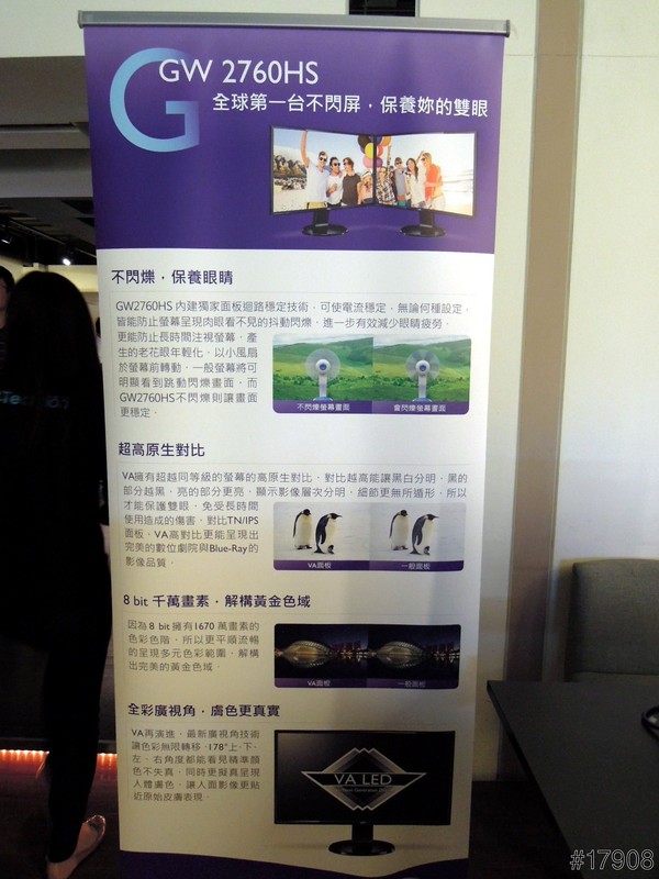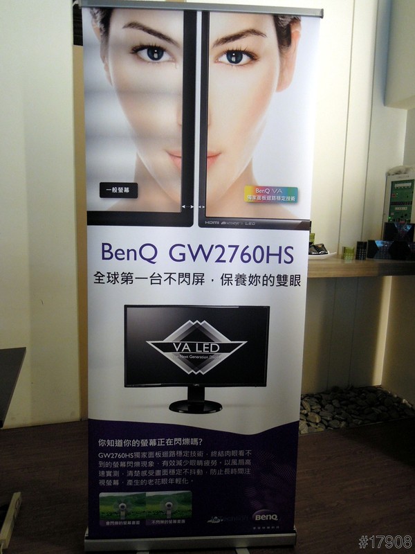 ▼ 今日的主角,BenQ GW2760HS全球第一台不閃屏液晶顯示器。三張大大的落地海報把重點一次表達出來。