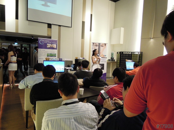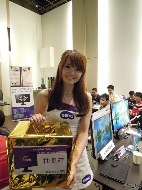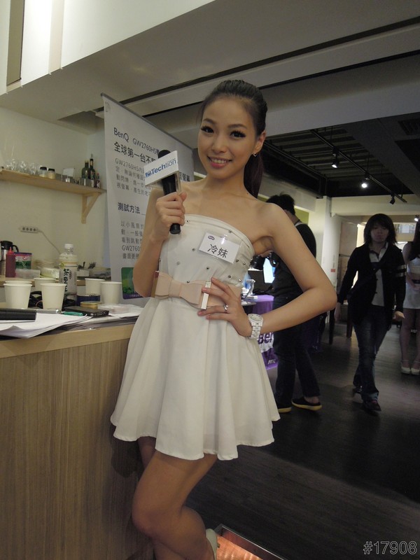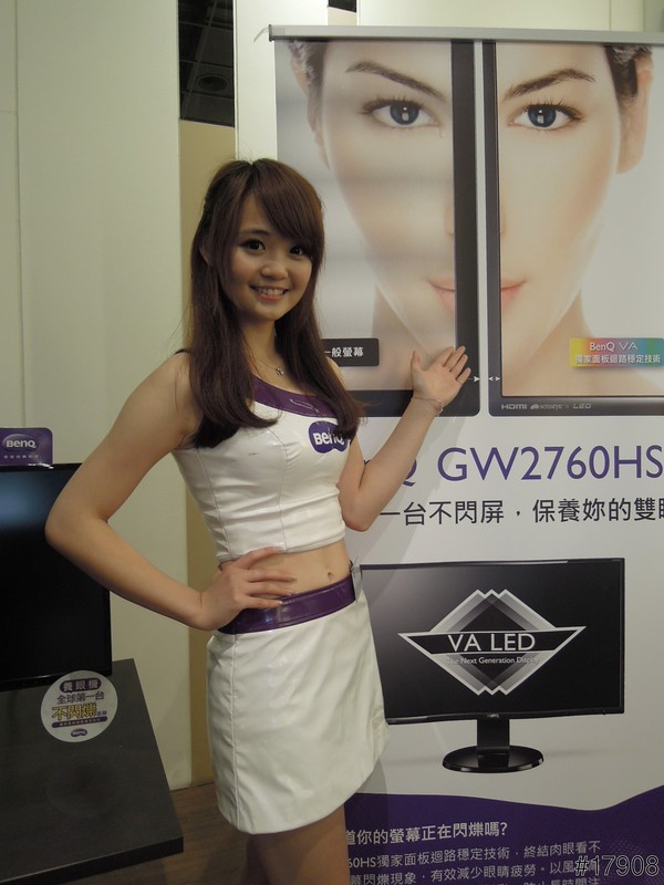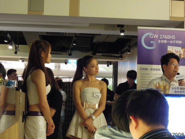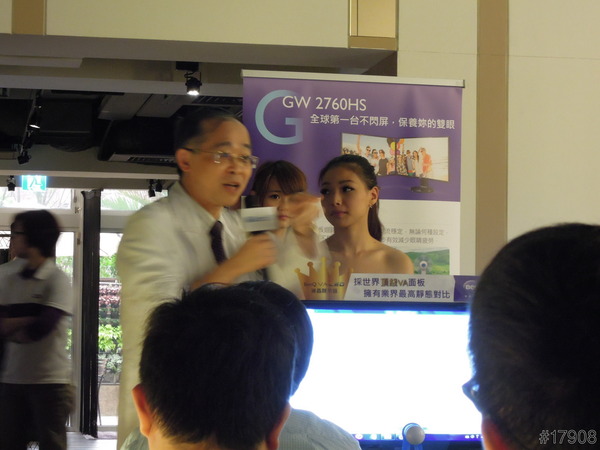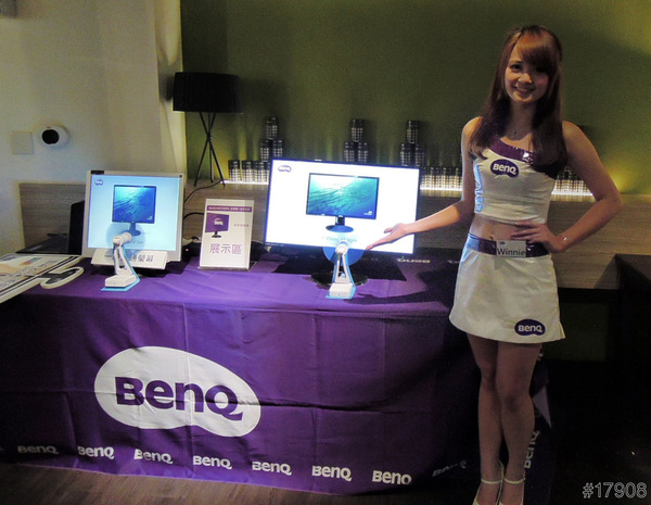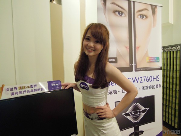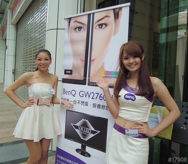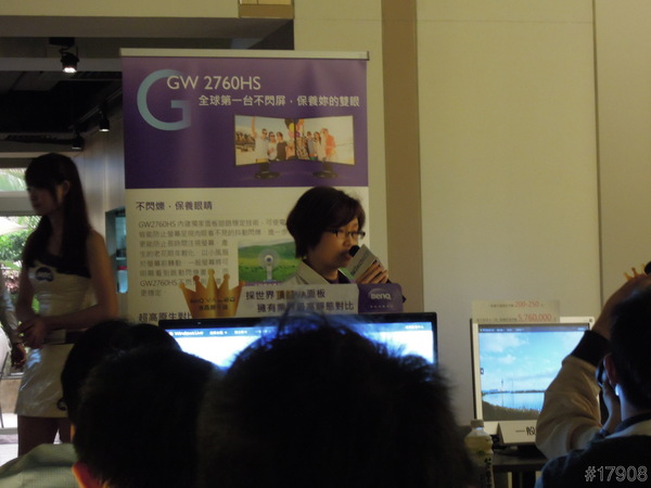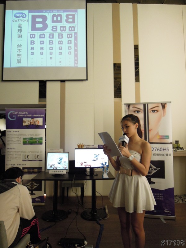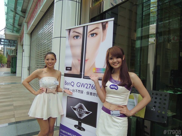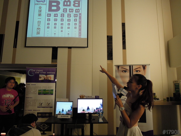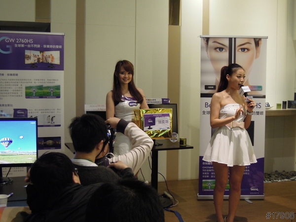 ▼ 「BenQ養眼體驗會」的主角GW2760HS全球第一台不閃屏液晶顯示器以及兩位亮眼又辛苦的主持人冷妹(左)及SG兼主持助理(Winnie)。