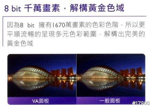 ▼ 8 bit螢幕面板擁有1670萬畫素的色彩,讓畫面更亮麗。