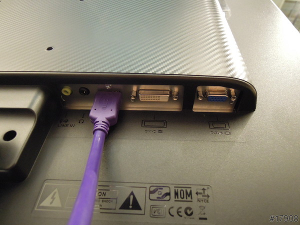 ▼ 背面右側底部,介面齊全,從左邊起為音源輸入埠 / 耳機孔 / HDMI / DVI / D-sub。