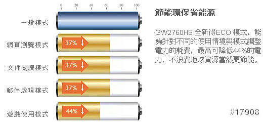 ▼ GW2760HS的ECO模式的省電功能有多省電?讓BenQ告訴你。
