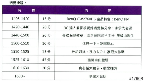 ▼ 兩位主講者:3C達人李老師(右一) 、國泰醫院眼科主任陳瑩山醫生(右二)以及BenQ產品行銷總監鄒總監(左二),左一是誰大家應該很清楚了。