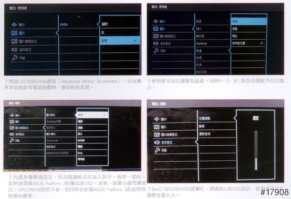 ▼ GW2760HS的層層目錄式架構操作起來很直覺簡單,一時間無法一一操作拍照,就引用DM內的介紹吧,您可發現GW2760HS還有些功能(如AMA)是會場中來不及告訴大家的。