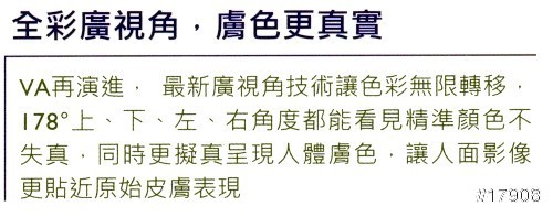 ▼ 再來就跟我在分組對抗時被問到的問題有直接關聯,GW2760HS所使用的VA面板擁有上下左右178度的全彩廣視角。