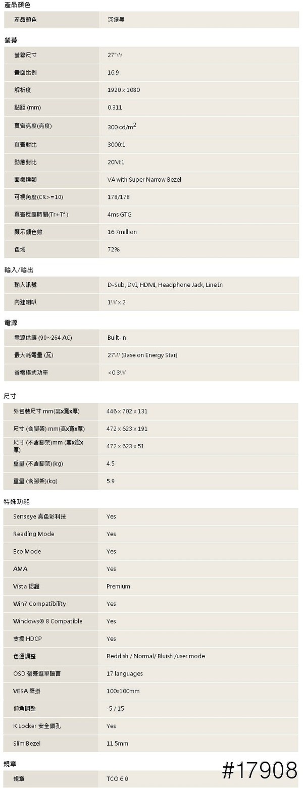 ▼ 最後我借用BenQ原廠的規格表,這是GW2760HS最完整的規格表了。