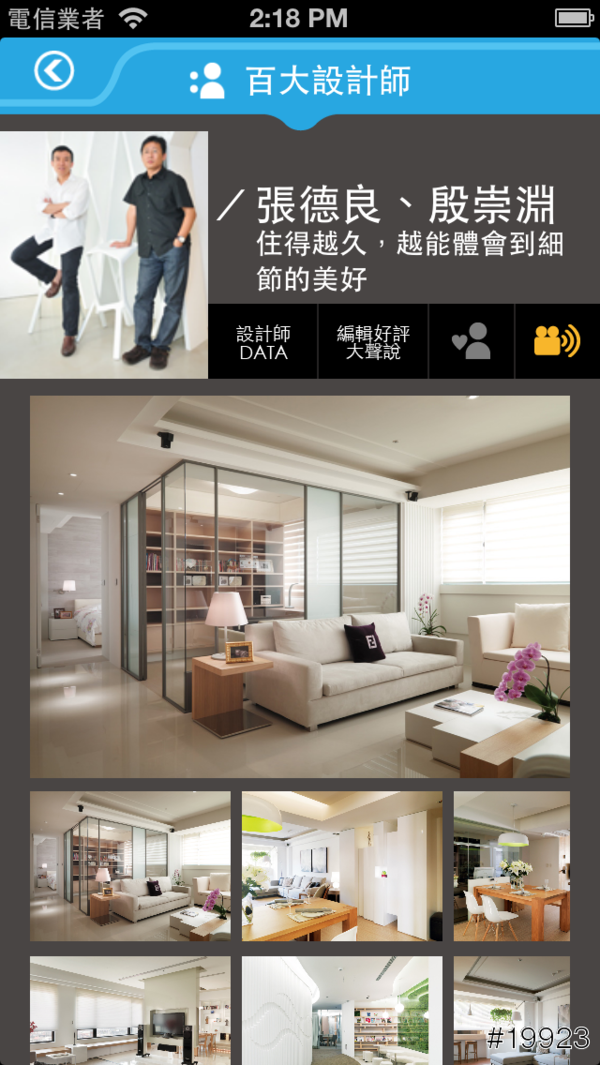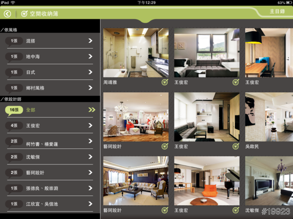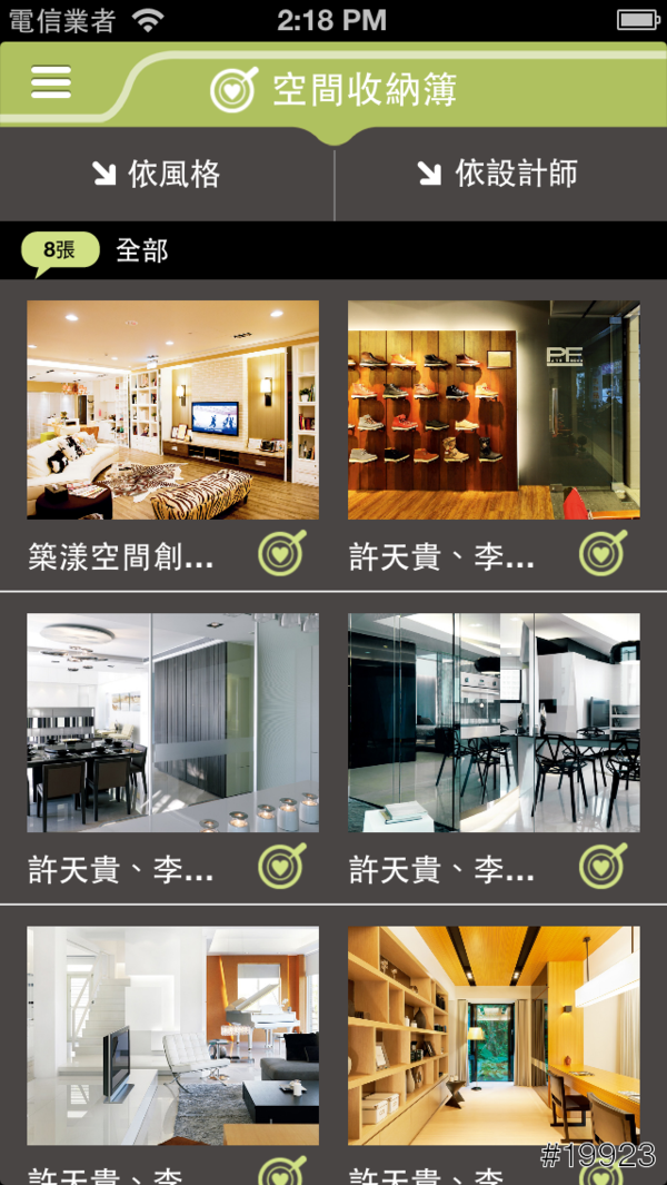 挺有趣的是,你可以在這支APP上做MEMO的動作,把自己喜歡的空間圖片加到最愛,再透過空間收納簿去了解我收集了哪些圖片,還依照風格以及設計師去找到原來這是誰設計的~