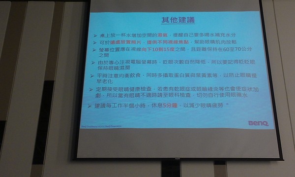 感謝BENQ跟T克邦工作人員辛苦的准備今天的活動,也很謝謝讓我來參加,今天讓我增廣見聞,也知道BENQ的用心,總市站在客人的角度想,才有今天這台的誕生,而且價格非常的優惠,算是一台CP值高的螢幕,若有機會我會考慮這台當我的首選,還有不閃卡,這個算是不錯的活動方式,讓活動變的更有趣起來了^^,我原本以為醫師不知道要來做啥,結果聽他說以後,受益良多阿,讓我們更寮解眼睛的構造,這些都是在學校裡面學不道的,最後感謝讓我參加的人,有機會我會多多參加,也請各位多多指教了(≧▽≦)