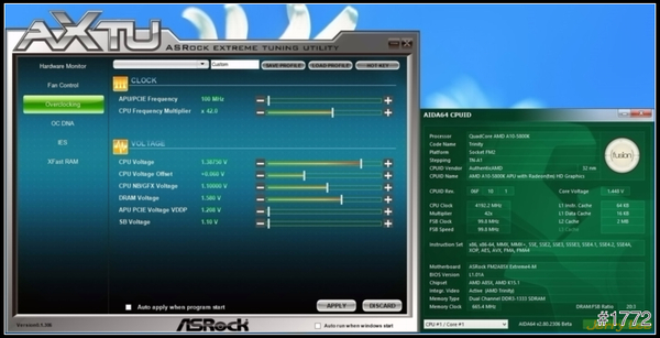 ▲在超頻後可以發現時脈提升至在4,200MHz(4200/3800=1.105%時脈提升)