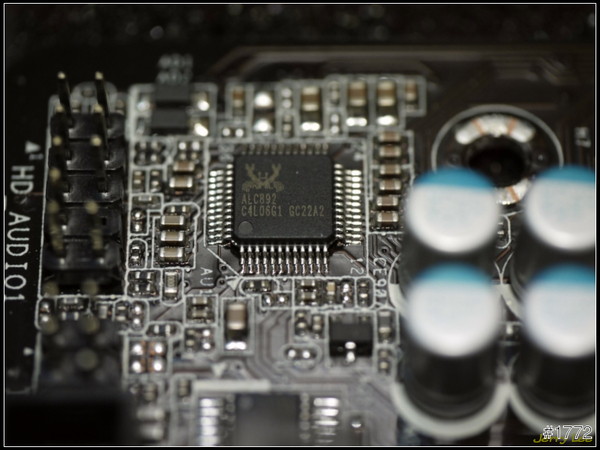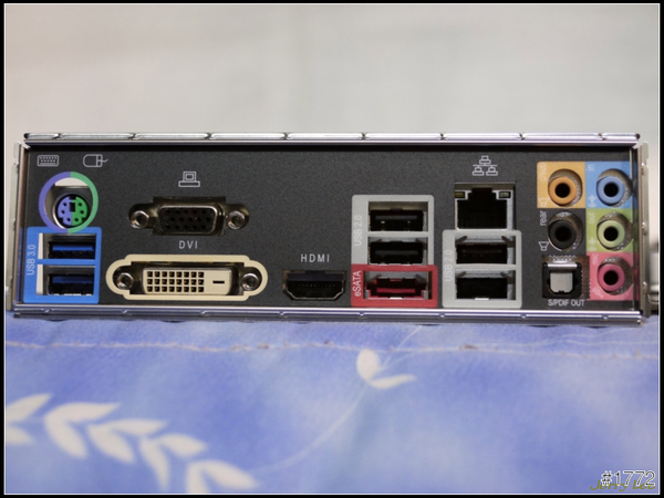 ▲背板IO的介面也配置了3種顯示介面,USB也有4個USB 2.0+2個USB 3.0的插孔,聲音部分也支援了7.1聲道跟數位音效輸出,還有一個e-SATA的插孔
